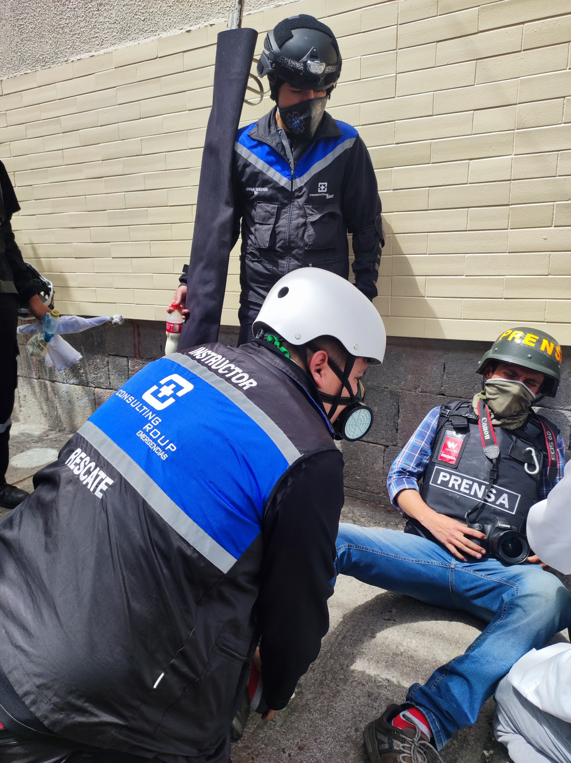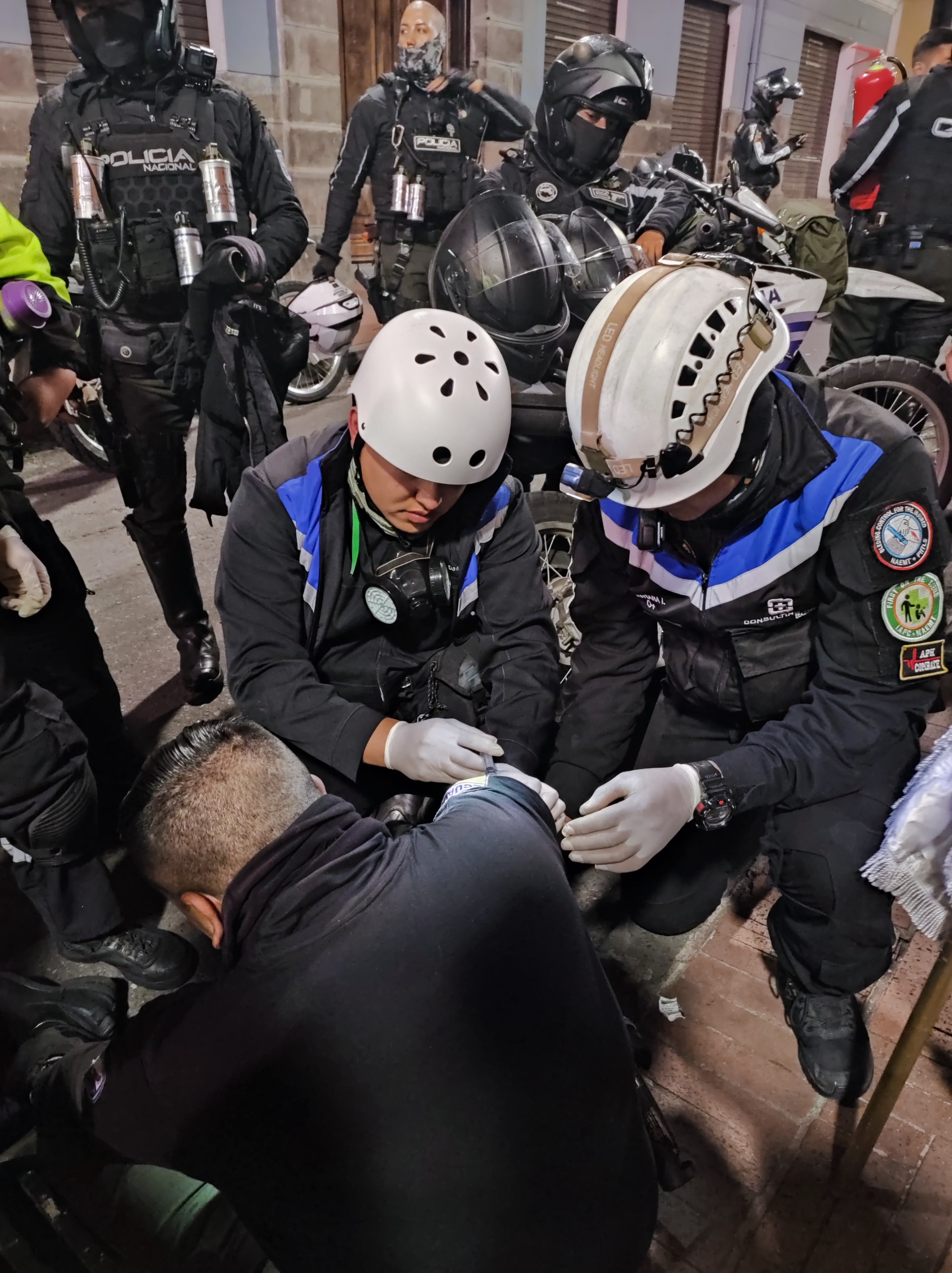 Las brigadas estuvieron conformadas por voluntarios y profesionales capacitados en emergencias, quienes brindaron primeros auxilios, estabilización de pacientes y atención inmediata a personas afectadas por traumatismos, exposición a agentes irritantes, crisis respiratorias y otras condiciones derivadas del contexto. Cada acción se ejecutó bajo estrictos protocolos de seguridad y bioseguridad, garantizando tanto la protección del paciente como del personal interviniente.